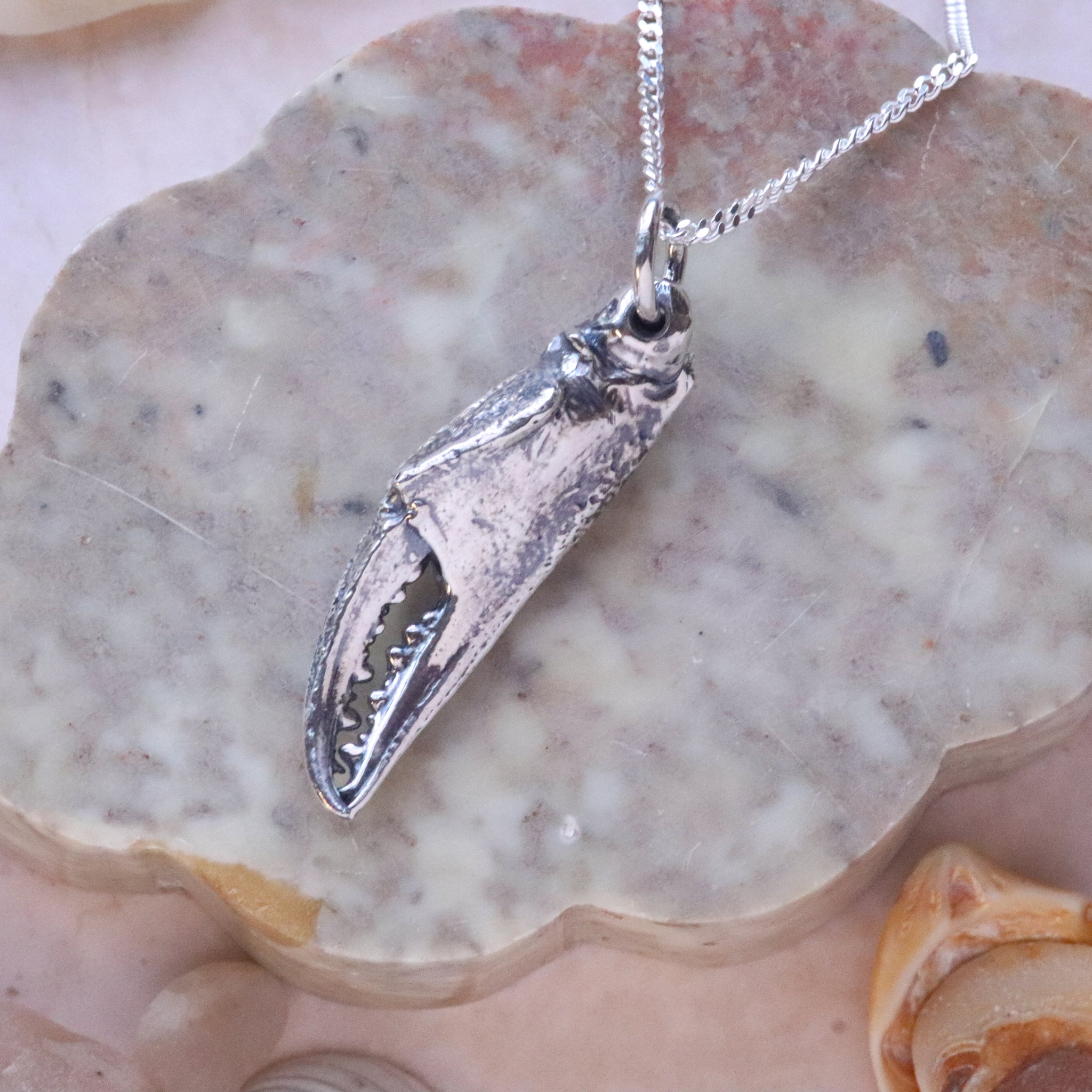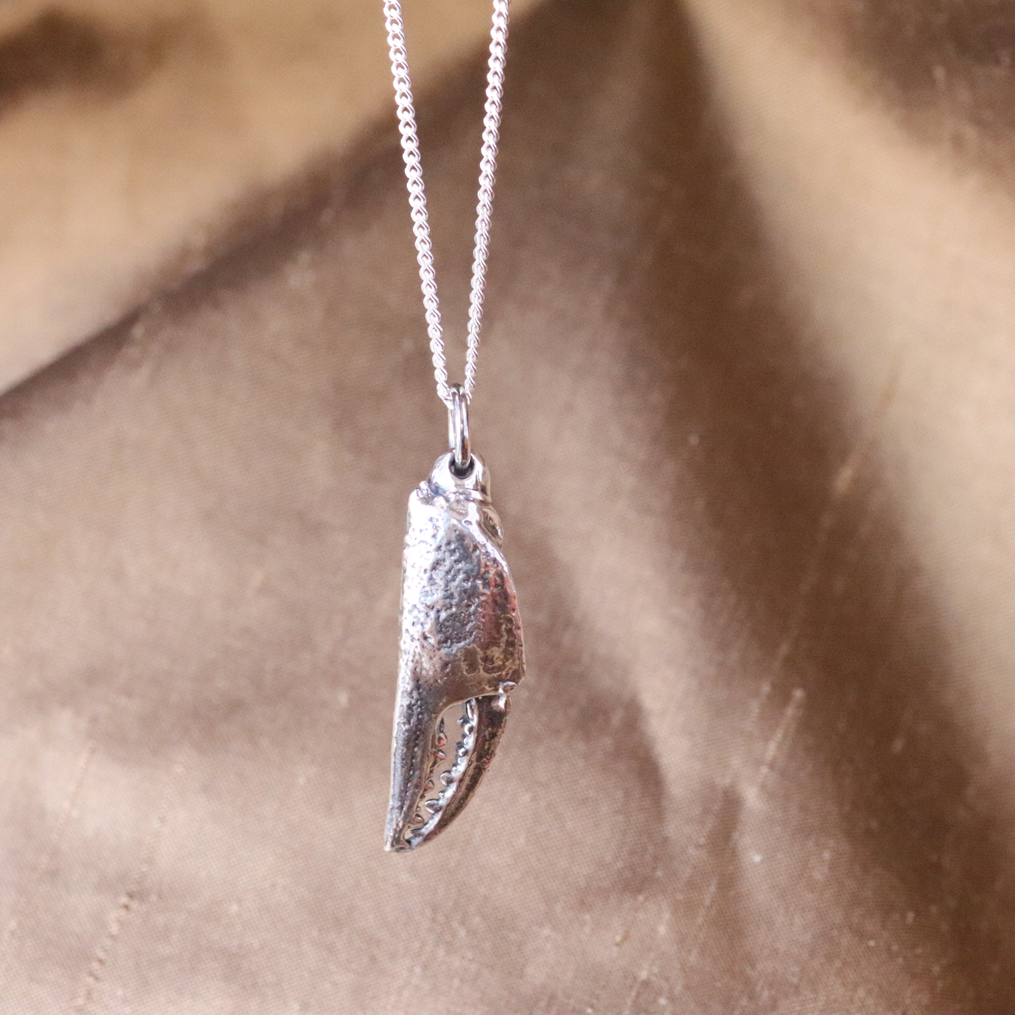 This pendant features cast crab in Sterling silver.