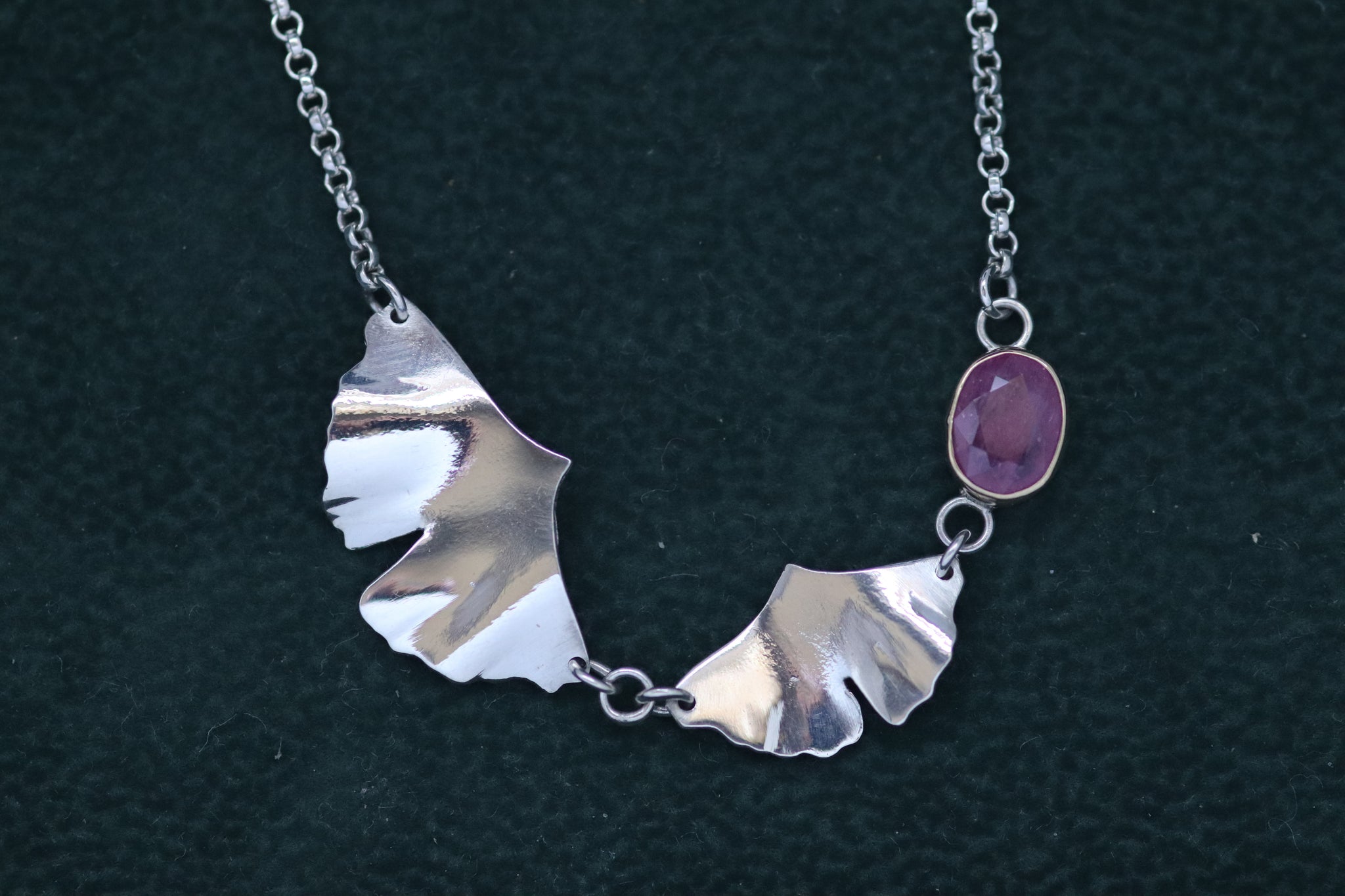 - Ginkgo ruby necklace length measures approximately 17inches