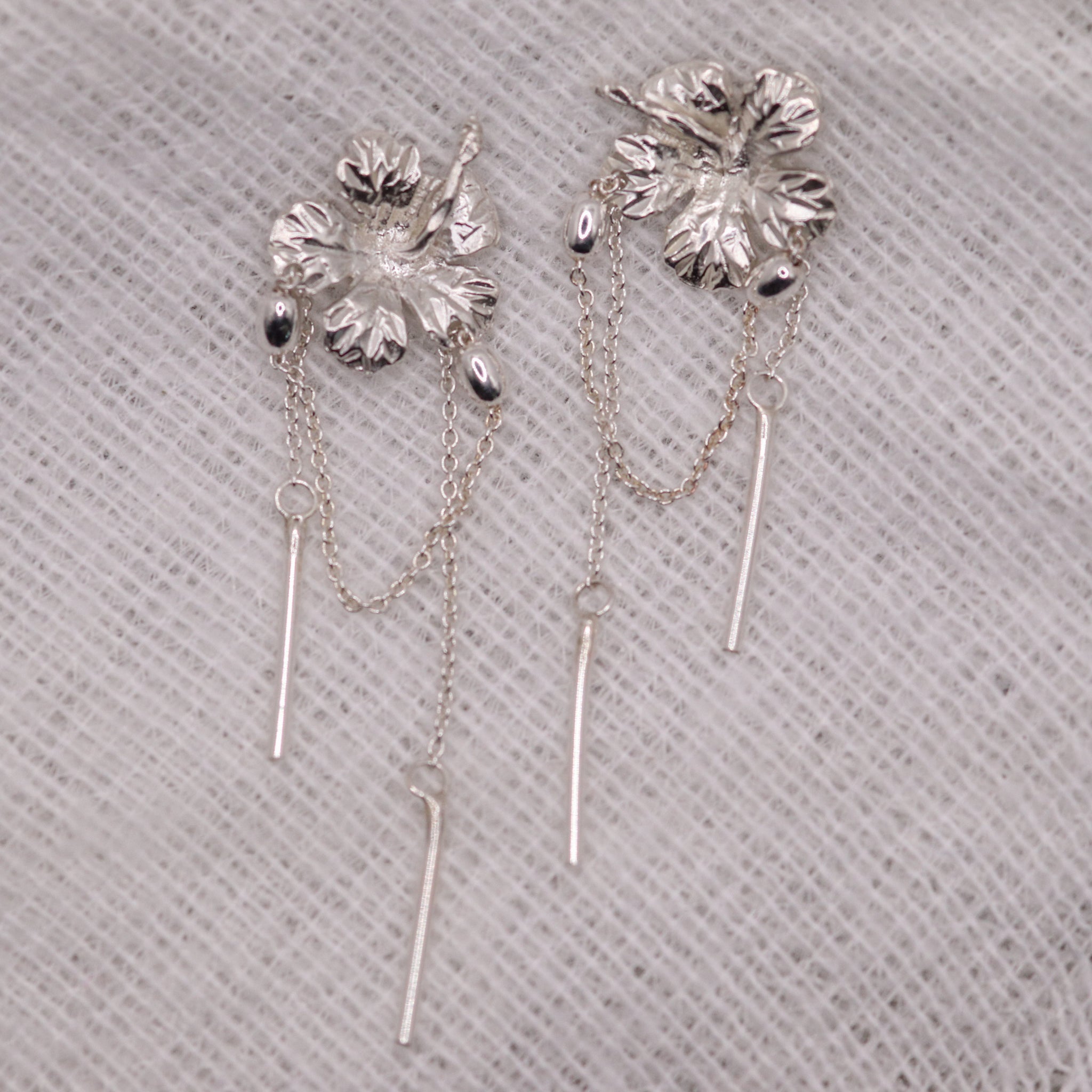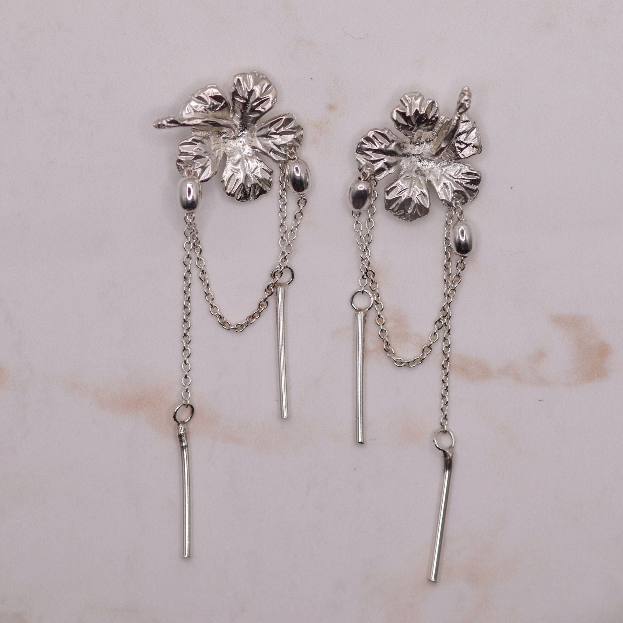 These Sterling Silver Hibiscus Earrings are a tropical daydream brought to life. They capture the lush heart of paradise in every sway.