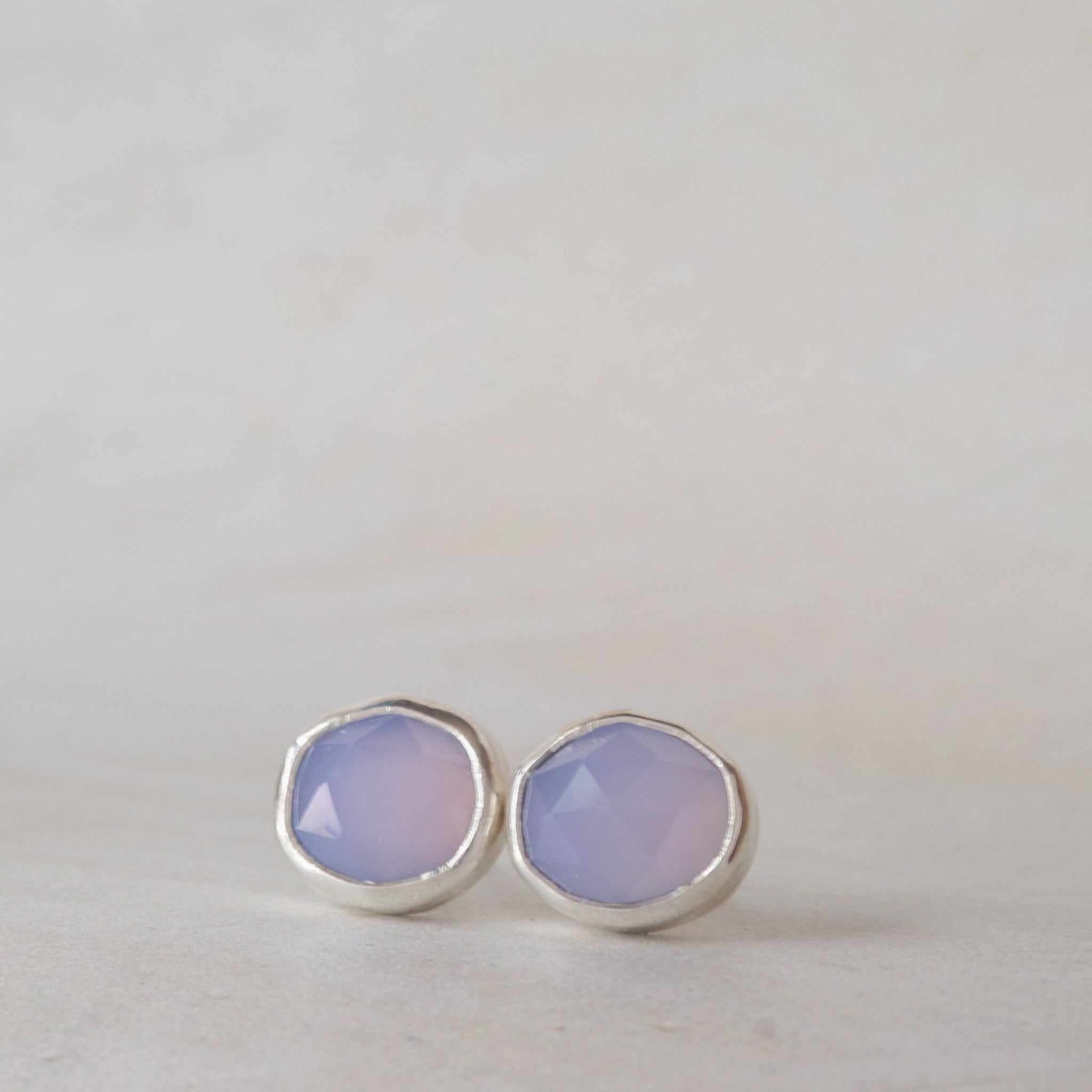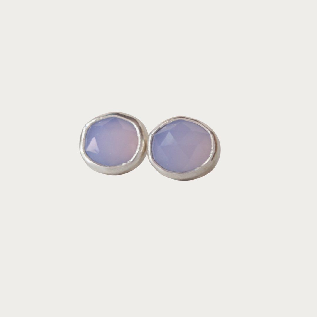 Soft as island sunrise These lavender quartz studs in sterling silver bring a gentle glow.