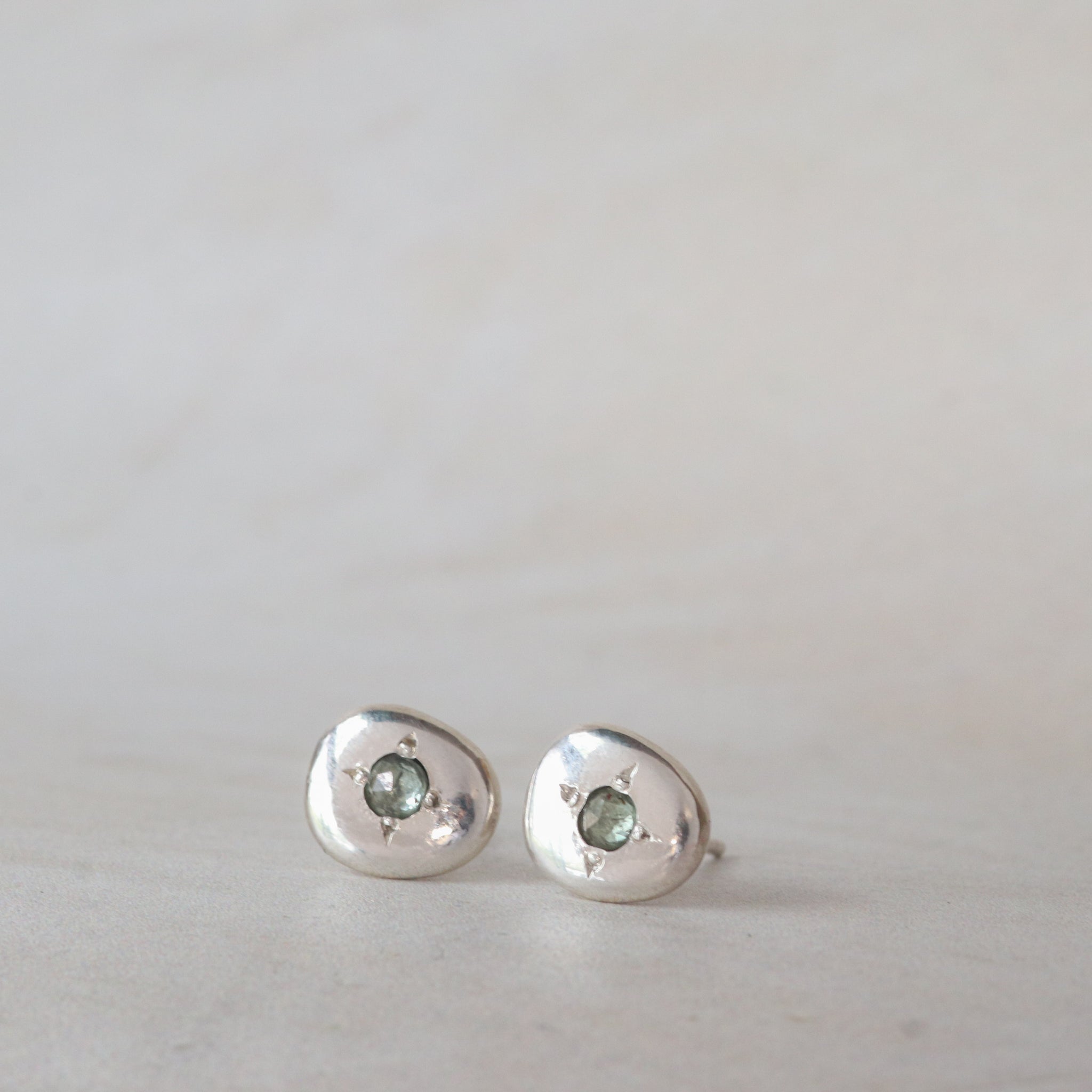 Inspired by sun-warmed stones along a coastal path, these sterling silver earrings with green sapphires bring soft curves and natural texture to your everyday vibe. Lightweight, organic, and full of laid-back island soul—perfect for ocean dreamers and barefoot wanderers.