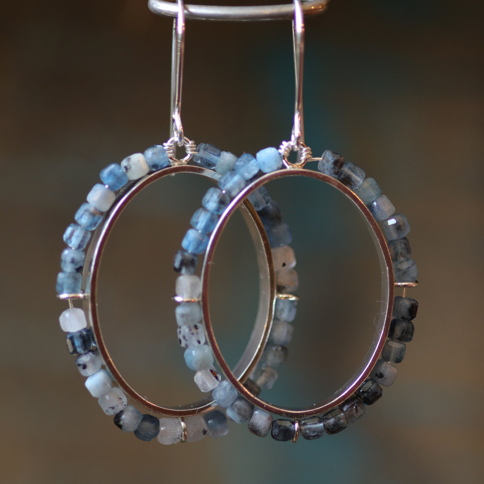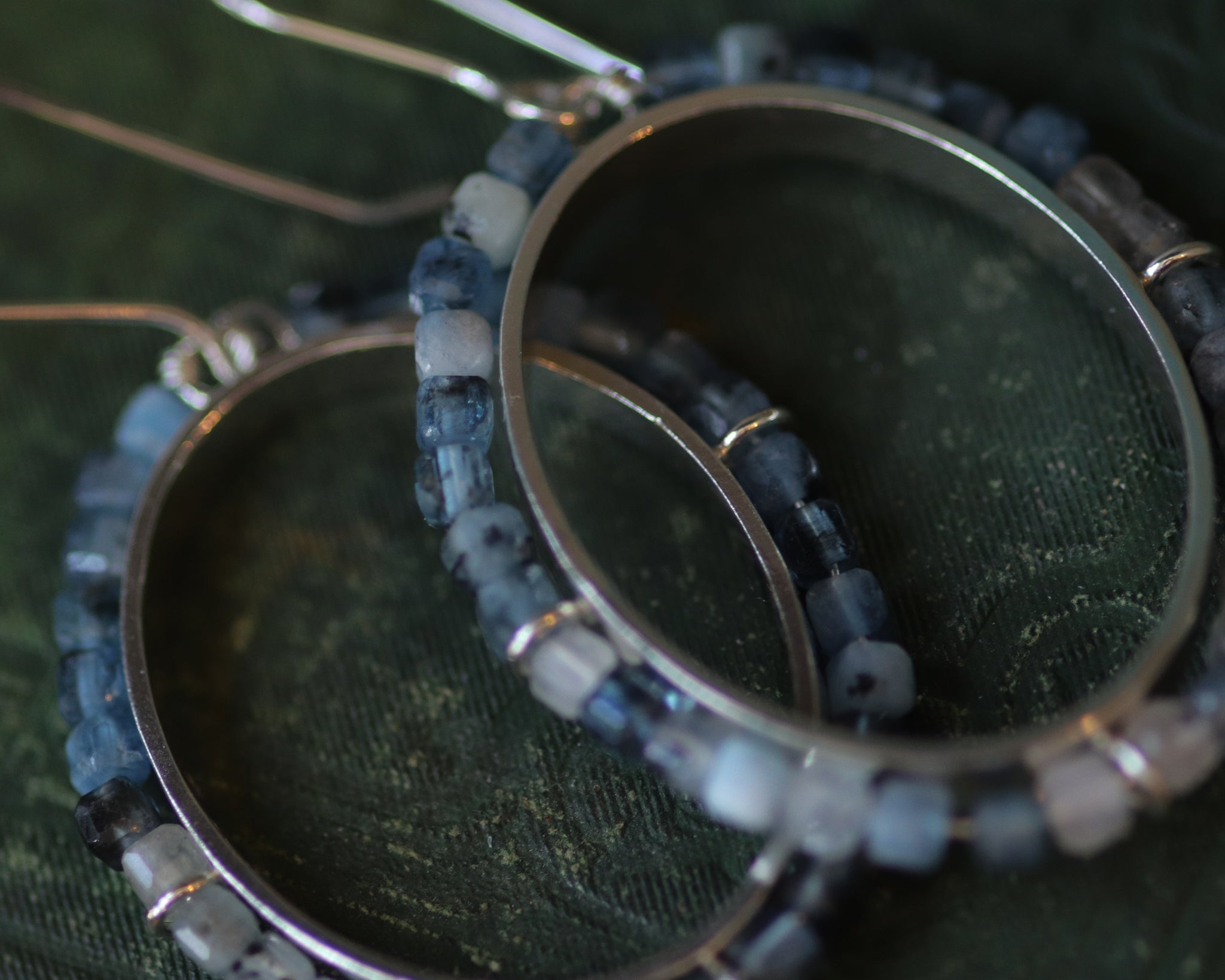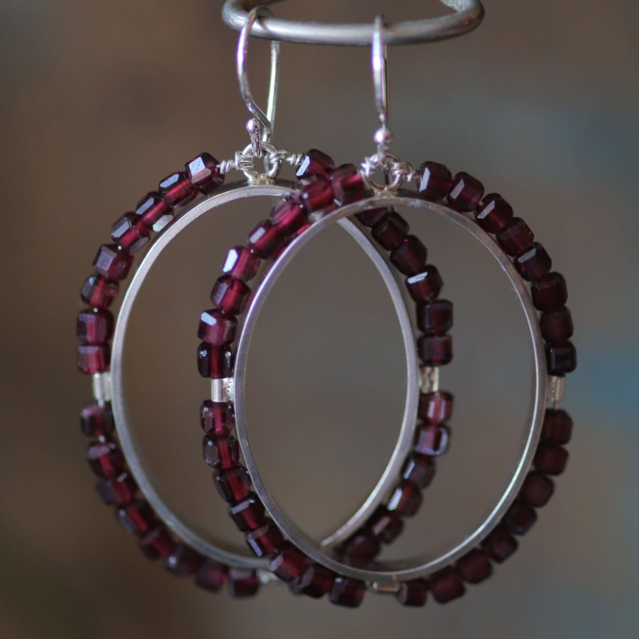 Empowering Sterling silver hoop earrings with beaded cube beads. These earring represents wholeness and and courage.
